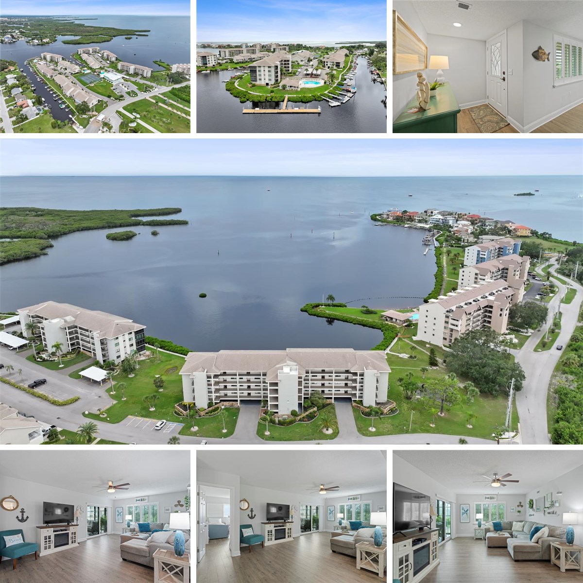 Rarely does a home come along where the view is as unforgettable as the lifestyle—this highly sought-after Gulf-front end-unit in Building 9 is one of them. Evenings here are defined by glowing West-facing sunsets that spill across the horizon, dolphins playing offshore, and sailboats drifting by. From your lanai, living room, or primary suite, the Gulf isn’t just a view—it’s the heart of everyday living. And with this condo, beauty is matched by peace of mind. The Milestone Inspection and SIRS are complete, the association reports no upcoming assessments, and the HOA is fully funded and well managed. The community is secured by a 24/7 guard gate, the building is elevated, with residences set above the parking level to help minimize typical flood concerns and this unit is fitted with new hurricane-impact windows and doors —still under warranty—for added confidence, energy efficiency and sound proofing. In addition to new plantation shutters throughout. Parking is another standout: your premium garage space—nearly enclosed and located at the base of the stairs leading to your unit—offers unmatched convenience, with your car, private storage locker, and bike rack all together. An additional parking space is also included, and the building features an elevator for ease. Beyond your door, Sand Pebble Pointe feels like a private resort. Swim year-round in the 2 heated pools with grilling areas, stroll the waterfront boardwalk, or practice on the putting green before dinner. The clubhouse offers a fitness center, library, card room, and social spaces that owners can even reserve for private gatherings at no cost. Neighbors gather for tennis and pickleball, while those who love the water enjoy a private community boat ramp, along with options for boat docks and RV/boat storage (when available) and kayak storage for an additional fee when space allows. With direct open-Gulf access and no bridges, weekends can mean island hopping to Anclote or Three Rooker—or simply drifting beneath a painted sunset sky. Inside, the property reflects a comprehensive remodel designed for both style and ease. Every detail was addressed—from lighting and fixtures to finishes, and even the plumbing. The kitchen pairs granite counters with shaker cabinetry and stainless appliances, opening seamlessly to dining and living spaces framed by Gulf views. Luxury vinyl flooring runs throughout for a clean, low-maintenance look. The primary suite is a true retreat, offering lanai access, Gulf views, a spacious walk-in closet, and a modern double-vanity bath. Guests enjoy their own private wing thanks to the split-bedroom layout. Ownership here also means carefree living, with the monthly HOA fee covering cable and high-speed internet (including many premium channels), sewer, trash, exterior maintenance, and building insurance—allowing you to spend more time enjoying the lifestyle and less time worrying about the details. Beyond the gates, you’re less than two miles from numerous waterfront restaurants, along with a public boat ramp and bait shop. The nearby Port Richey Marina offers wet slips, fuel, daily boat rentals, and is home to Freedom Boat Club—perfect for enjoying the boating lifestyle without the maintenance. Priced well below recent sales of similar units, the value here is as clear as the water views. This is more than a condo—it’s a front-row seat to sunsets, a community that feels like vacation, and a home crafted for comfort, confidence, and coastal living.